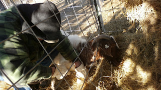 Hopefully we will be visited by an additional buyer this week who will take a few more off our hands, leaving us with only MamaGoat, Cactus, Sunflower and the two bottle buckliings. MamaGoat is past her kidding years so she will live out her life here. Rhiannon was unwilling to give up Cactus and Sunflower as they were her bottle babies from last year and Cactus is pregnant; she wants to be with her for her first kidding. Sunflower is a little bit gangly and not really fit for breeding, so she's become a pet; she may eventually be sold if it's to another family as a pampered pet goat. And the two bottle bucklings will hopefully be sold as soon as possible.